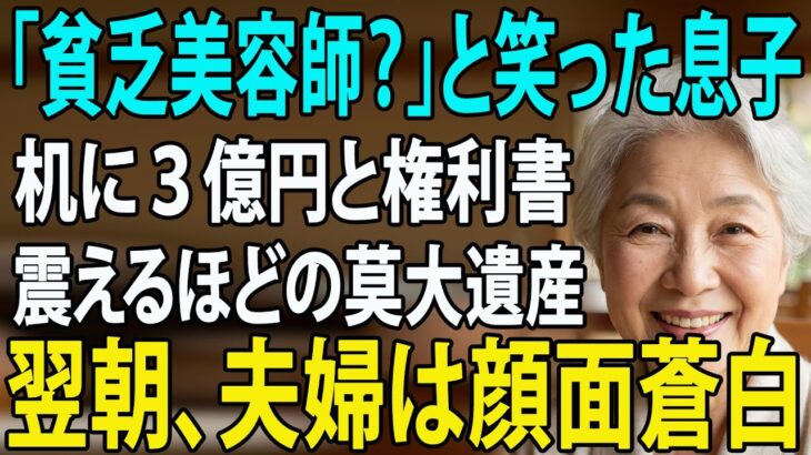 「貧乏美容師は恥ずかしい」と敬老の日に絶縁された私。翌朝、3億円の通帳と家の権利書を置いて姿を消した結果→息子夫婦「え?」【シニアライフ】【60代以上の方へ】